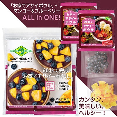 フルッタフルッタのロングセラー商品「お家でアサイーボウル」と、相性抜群のマンゴーとブルーベリーの組み合わせで、美味しさとヘルシーさを両立します。