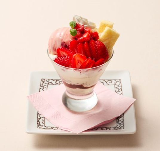 『たっぷりいちごのシフォンパフェ』 税込¥900~920 ※店舗により価格が異なります。