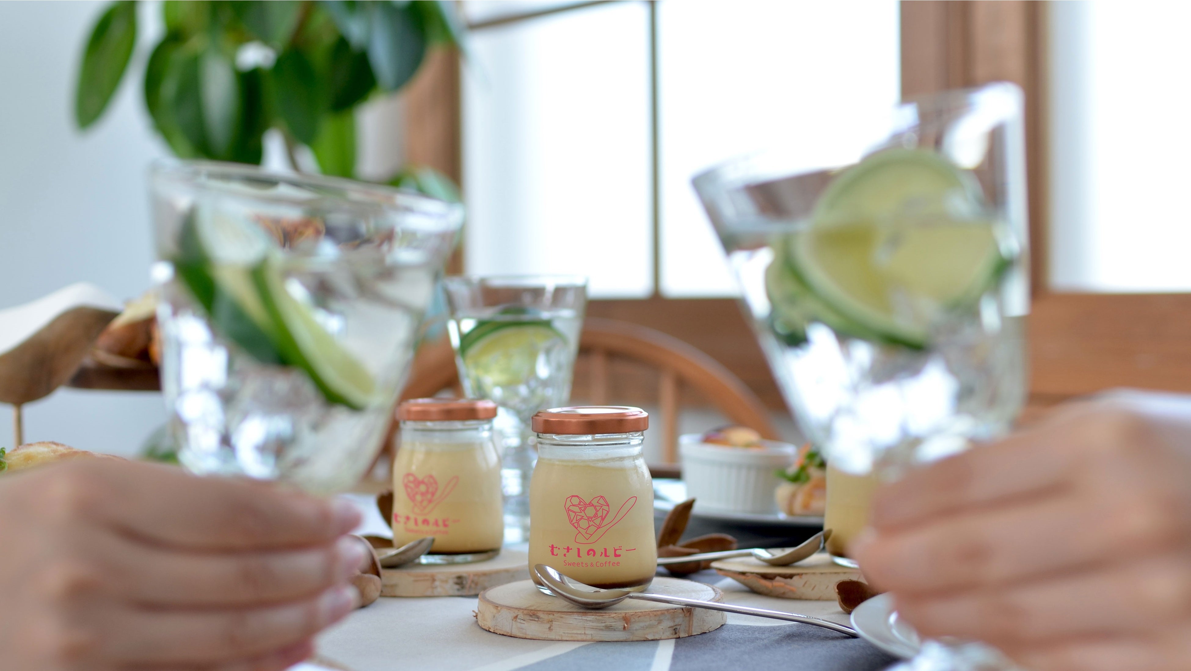 ラインナップはプリン(ボトルスイーツ)、シフォンケーキ、フィナンシェなど。⽶粉を使⽤しているため