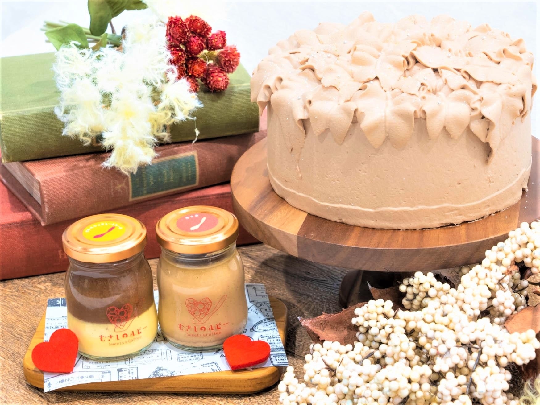 フレッシュなチョコレートの風味をを堪能できるプリンとシフォンケーキで、チョコに満たされるバレンタインを。