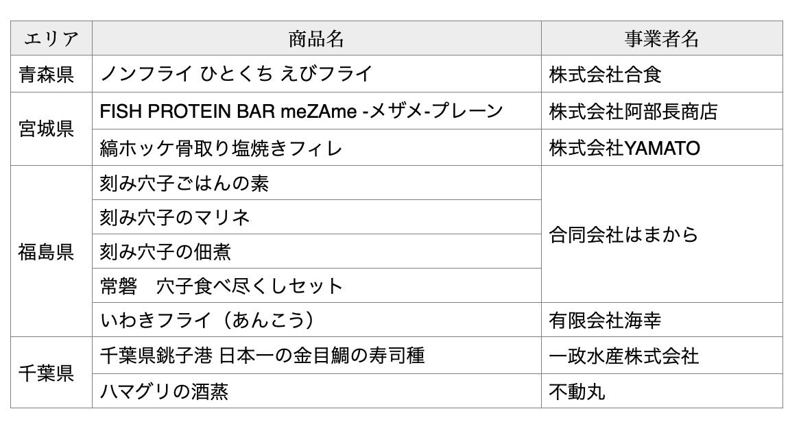 本事業で開発・リニューアルした商品の第三弾として、2023年2月6日(月)より、青森県・宮城県・福島県・千葉県の海の幸を使用した商品をECサイトにて発売します。