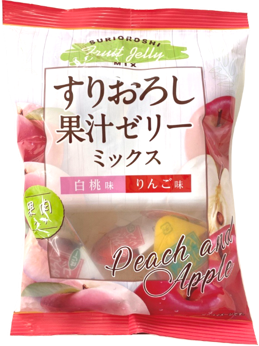 商品特徴:たっぷりの果汁と白桃とりんごの果肉が入った2種アソートゼリーです。