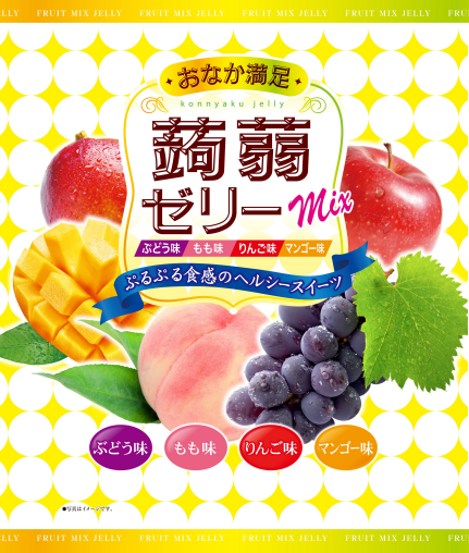 「おなか満足蒟蒻ゼリー」はぶどう・もも・りんご・マンゴーの果汁を使用した大容量パックの蒟蒻ゼリーです。そのまま食べることができる個包装タイプなので持ち運びに便利で、小腹がすいた時に気軽に食べられるサイズです。またヘルシーなので、ダイエット中のおやつとしても最適です。