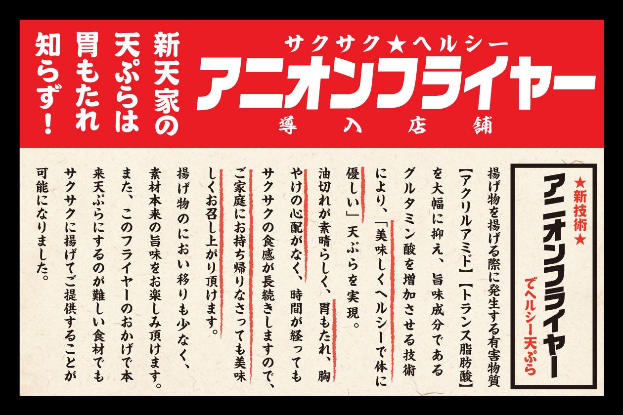 「天ぷらと寿司酒場 新天家-しんてんち- 長岡店」の天ぷらは、”アニオンフライヤー”を使用しております。