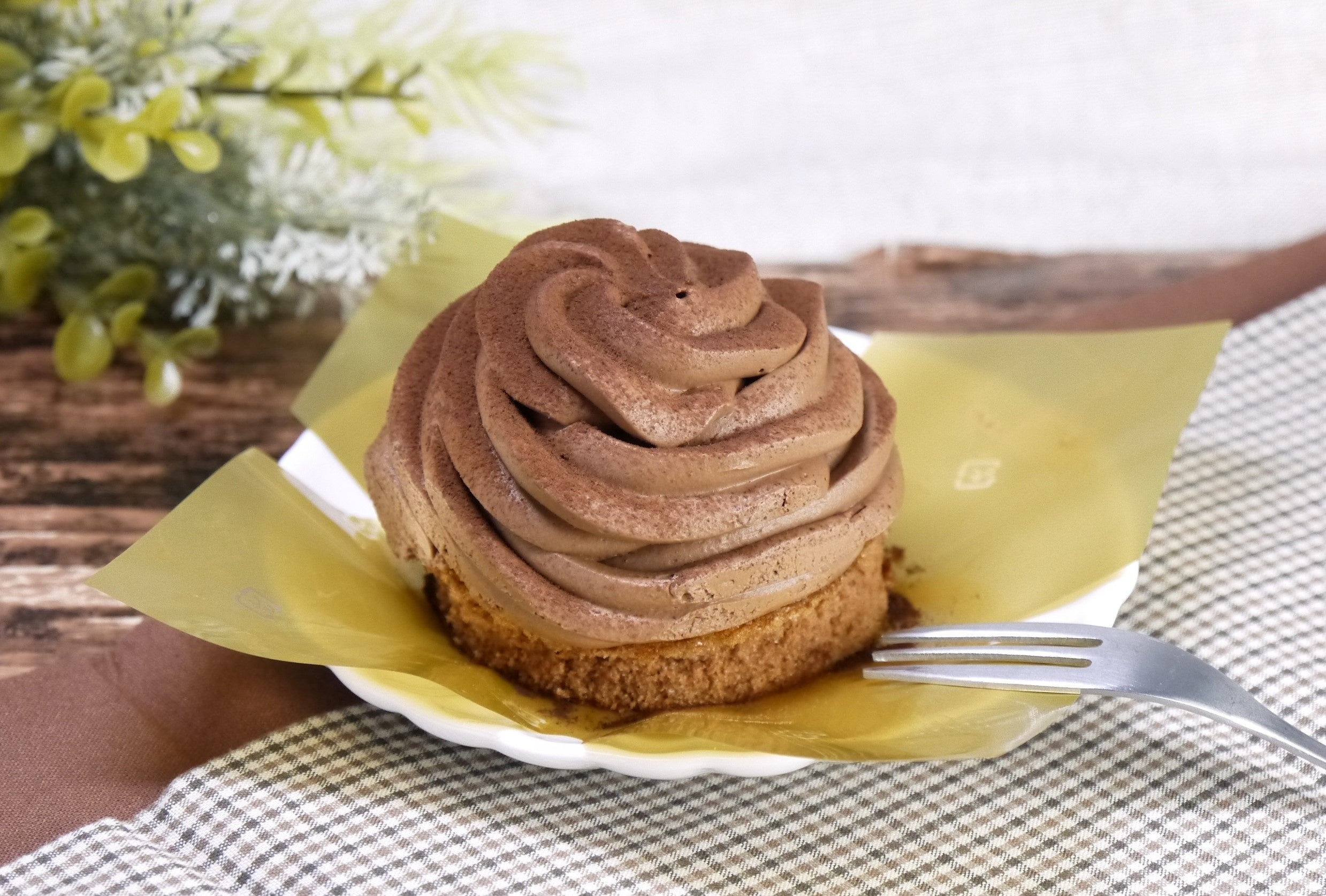 しっとりした厚めのココアスポンジ生地の上に、ベルギーチョコレートホイップとラム酒を効かせたガナッシュクリームをふんだんに絞っています。ベルギーチョコレートの濃厚な味わいと、香り豊かなラムの風味を楽しめる、大人のモンブランです。
