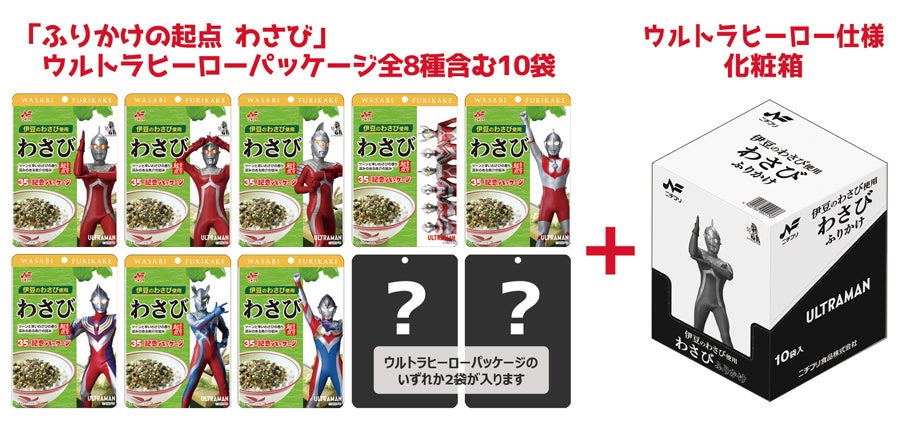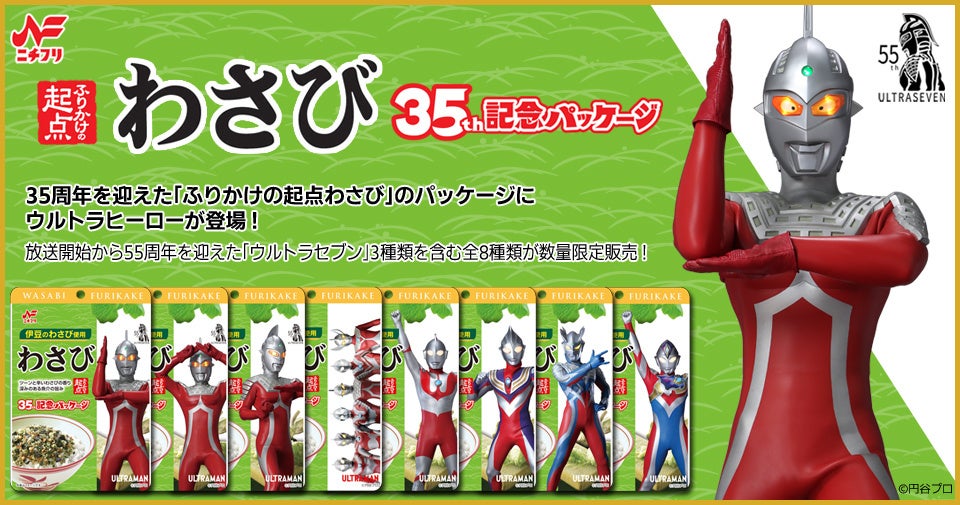 ニチフリ食品 株式会社(本社:静岡県静岡市、代表取締役社長:塩坂 恵理子)は、「ふりかけの起点わさび」発売35周年を記念し、ウルトラヒーローがデザインされた「ふりかけの起点わさび」(35周年記念パッケージ)を2023年3月13日(月)より数量限定で発売いたします。