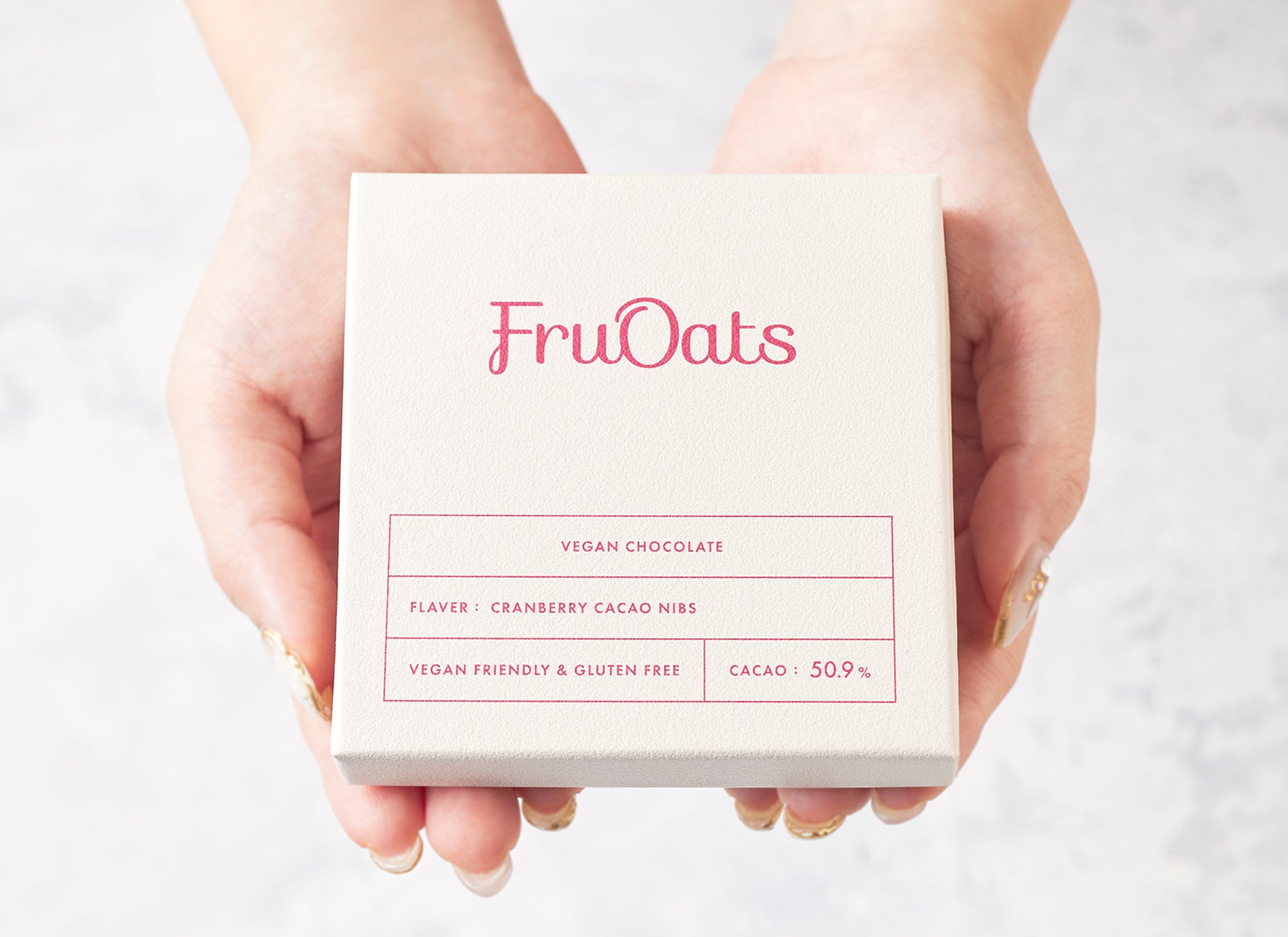 からだに気を遣う方への贈り物に最適な「ヴィーガンチョコレート」。FruOatsオリジナルの限定パッケージに1枚ずつチョコレートが包装されています。また、手渡しがしやすいオリジナルの紙袋を無料で同梱しています。
