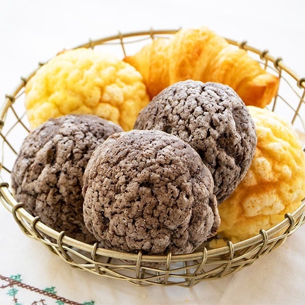 特長:Pan&の菓子パン人気No.1のメロンパンのショコラフレーバー。生地の外側だけでなく内側にもココアパウダーを練り込み、更にチョコチップを入れて焼き上げました。クッキー生地に発酵バターを使用しているため、温めると芳醇な香りに包まれます。黒に近い深みのある色合いは、ブラックココアによるもの。ほのかなビター感が加わることで、程良くセミスイートな味わいに仕上げています。ショコラの風味で気分を上げたい朝、リラックスしたい休憩時間など様々なシーンでお楽しみください。
