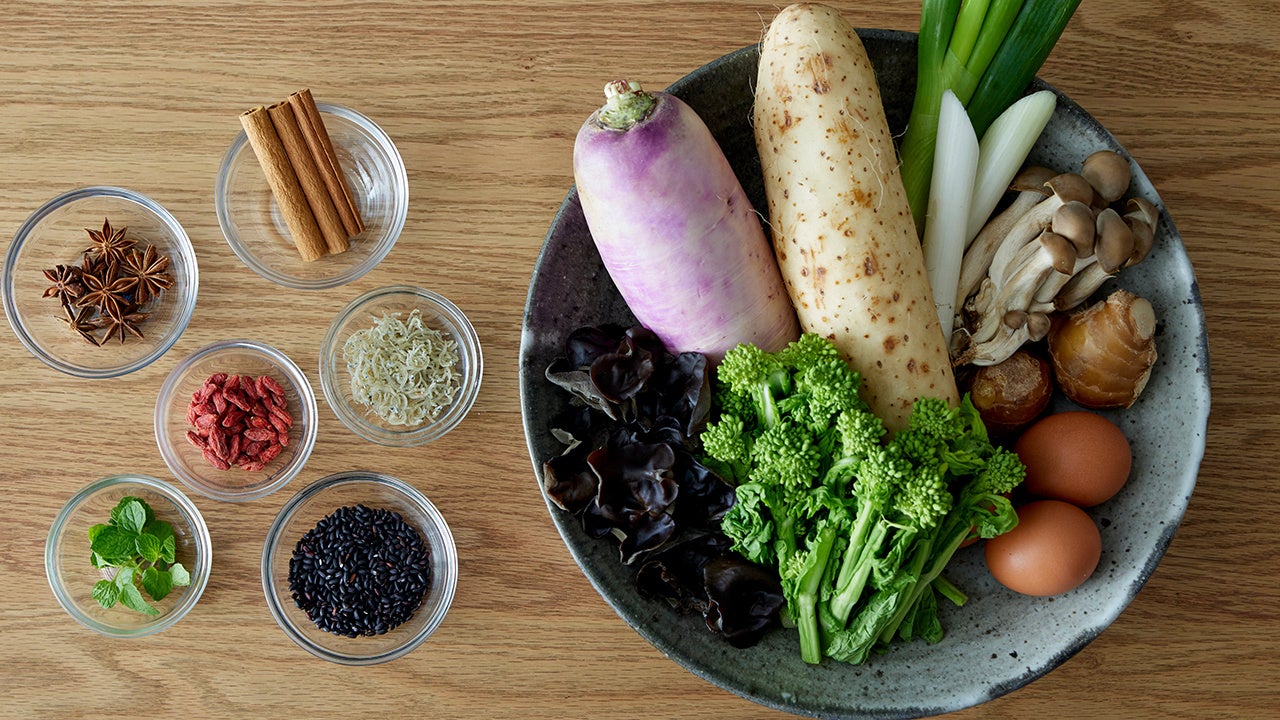 「薬膳」とは、中国の伝統医学である中医学の考えに基づき、季節や体調に合う食材を選んだ食事のこと。つまり、大切なのは食べる食材選びです。今回は、日本の家庭でも日常的に取り入れられる「食べておいしい薬膳」を提案している齋藤菜々子さんのもと、日本人の舌になじみ深く、でも薬膳の効能も期待できる食材をたくさんとり入れました。