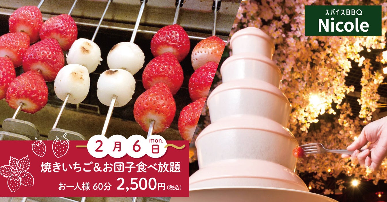 国内 約200店舗、海外 2店舗、業態数 約90の飲食店を展開するGYRO HOLDINGS株式会社(本社:新宿区西新宿、代表取締役社長:根本 寿一)の事業会社である株式会社パートナーズダイニング(本社:新宿区西新宿、代表取締役社長:斎藤浩司)は、「スパイスBBQ Nicole(ニコル)」にて2023年2月6日(月)より「焼きいちご&お団子食べ放題」をスタートいたします。
