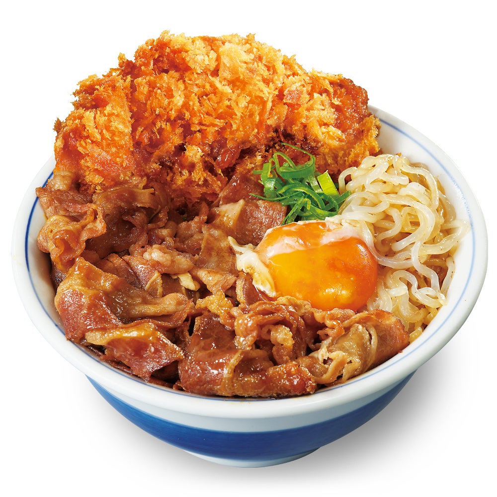 ■牛すき焼きとチキンカツの合い盛り丼 780円(税込858円)