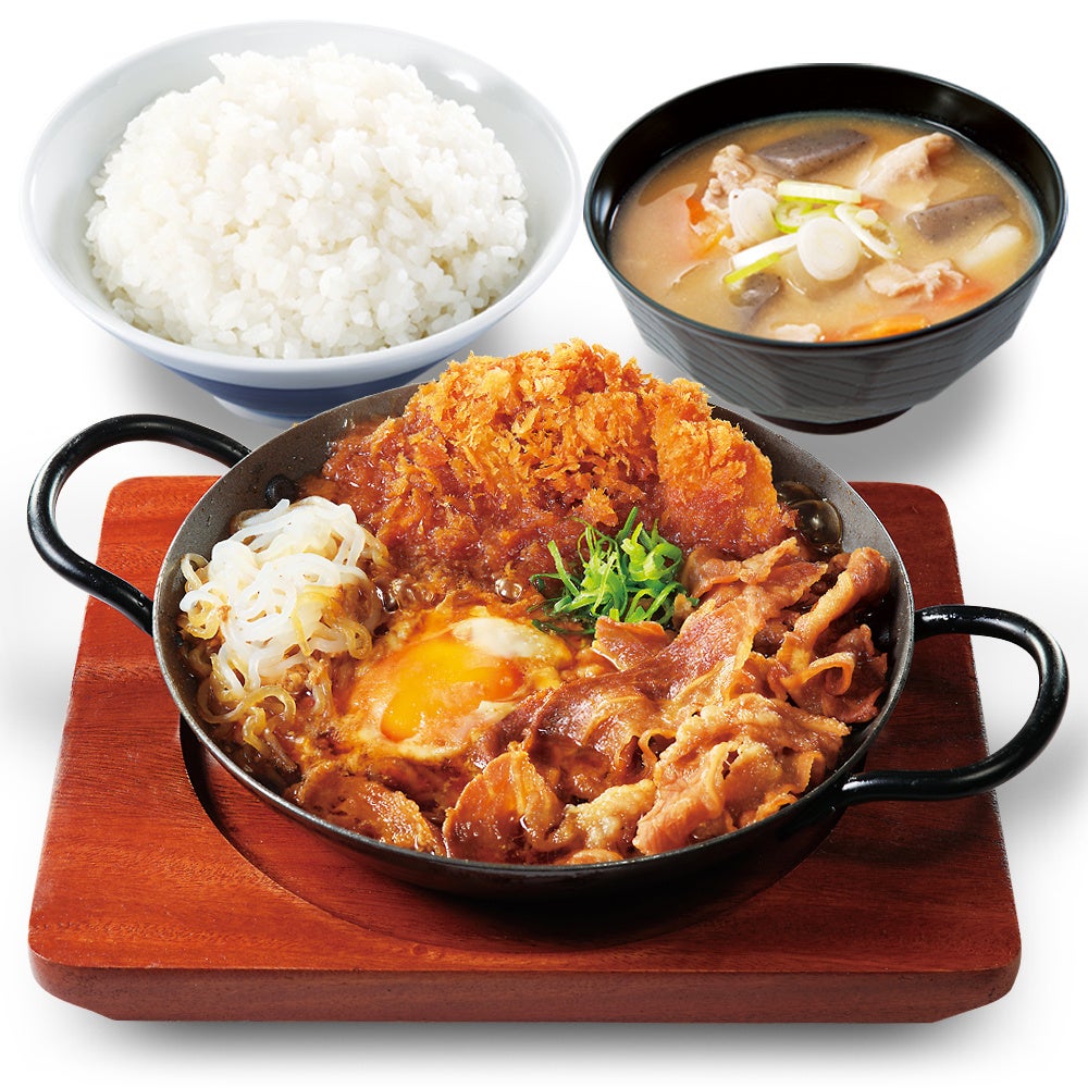 アークランドサービスホールディングス株式会社の⼦会社、とんかつ専⾨店「かつや」を展開している株式会社かつや(本社:東京都千代⽥区/代表:⼤内 勇⼀)は、国内「かつや」にて、期間限定メニュー「牛すき焼きとチキンカツの合い盛り」を2023年2月10日(金)より期間限定で販売いたします。