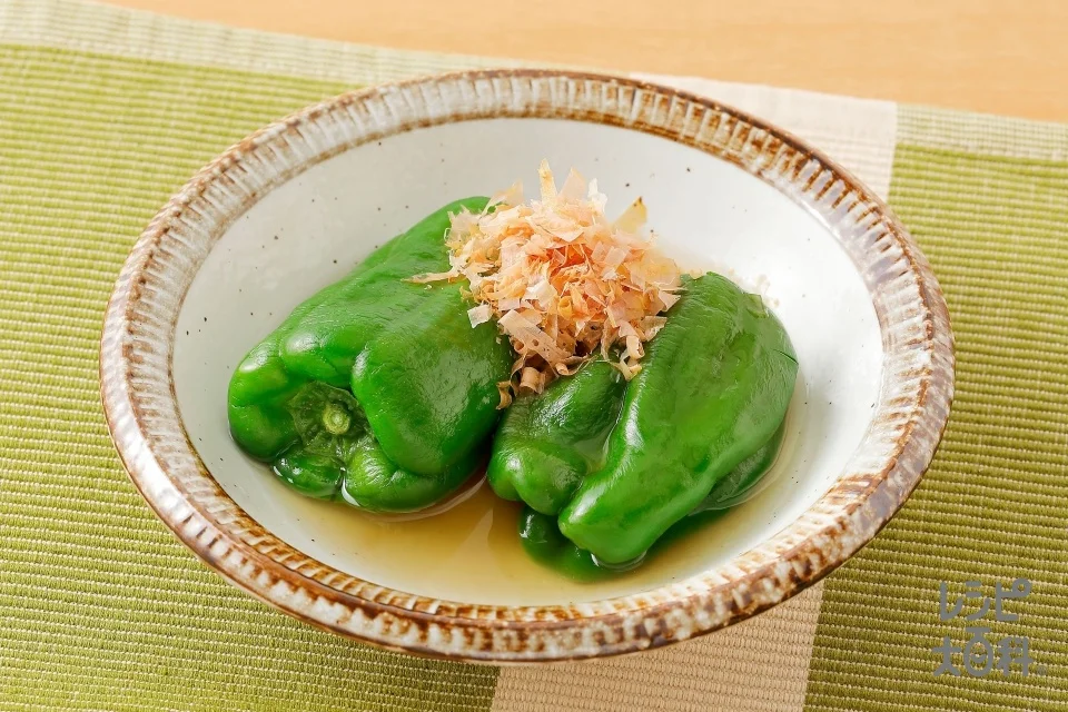 『まるごとピーマンのレンチン煮浸し』のレシピはこちらをご覧ください。