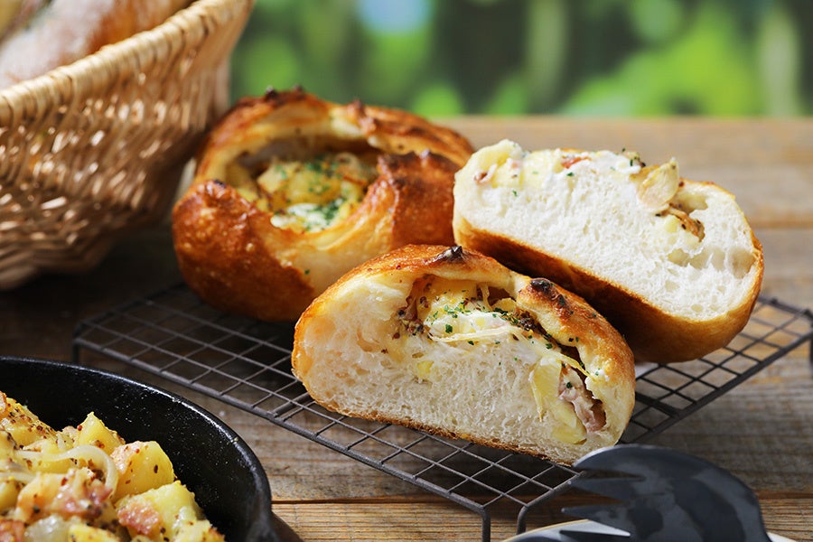 ハートブレッドアンティークのお惣菜パンの代表といえば「のび〜るとろりんチーズフランス」。発売当初から幅広い世代にご好評いただいており、今もなお沢山のお客様に愛されているお惣菜パンが季節限定で「ジャーマンポテト」入りで新発売いたします。