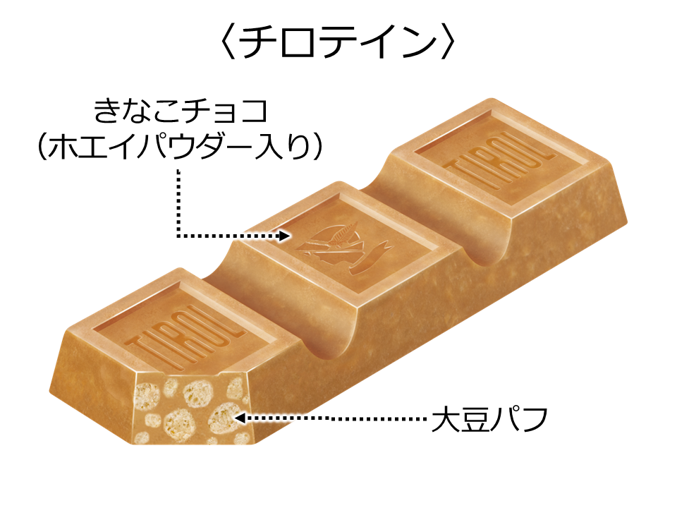 チロルチョコの人気フレーバーである「きなこ」を使用したプロテインバーチョコレートを開発しました。