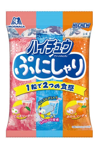 「ハイチュウ」は1975年の発売以来、心地よい食感とジューシーな味わいで長きにわたり、多くのお客様にご愛顧いただいております。この度の新商品「ハイチュウ<かむほどハッピーチ味>」は、白桃のまろやかな甘さとジューシーさがかむほどに味わえる「ハイチュウ」です。また「ぷにしゃりハイチュウアソート」は、炭酸の爽快な味わいに加え、ぷにぷに食感のグミとシャリシャリ食感のグラニュー糖が入っており、1粒で2つの食感をお楽しみいただけます。