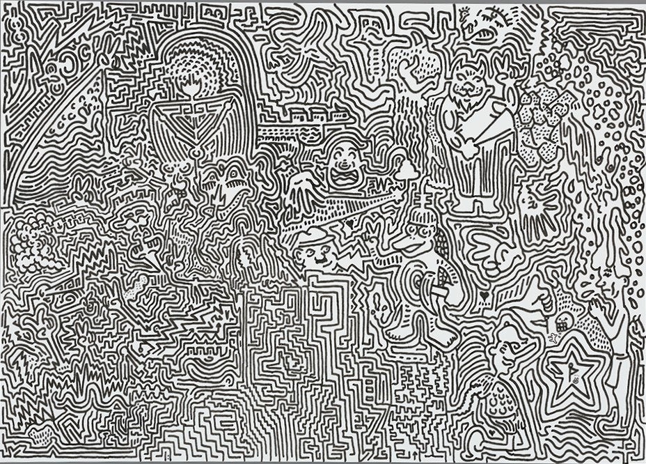 1977年生まれ。彼が真っ白いキャンバスに表現するのは、0.03から0.7mmまでのペンで描く唯一無二の個性豊かなキャラクター達。それぞれ表情や格好が違い、画面の中で踊っているように表現される。