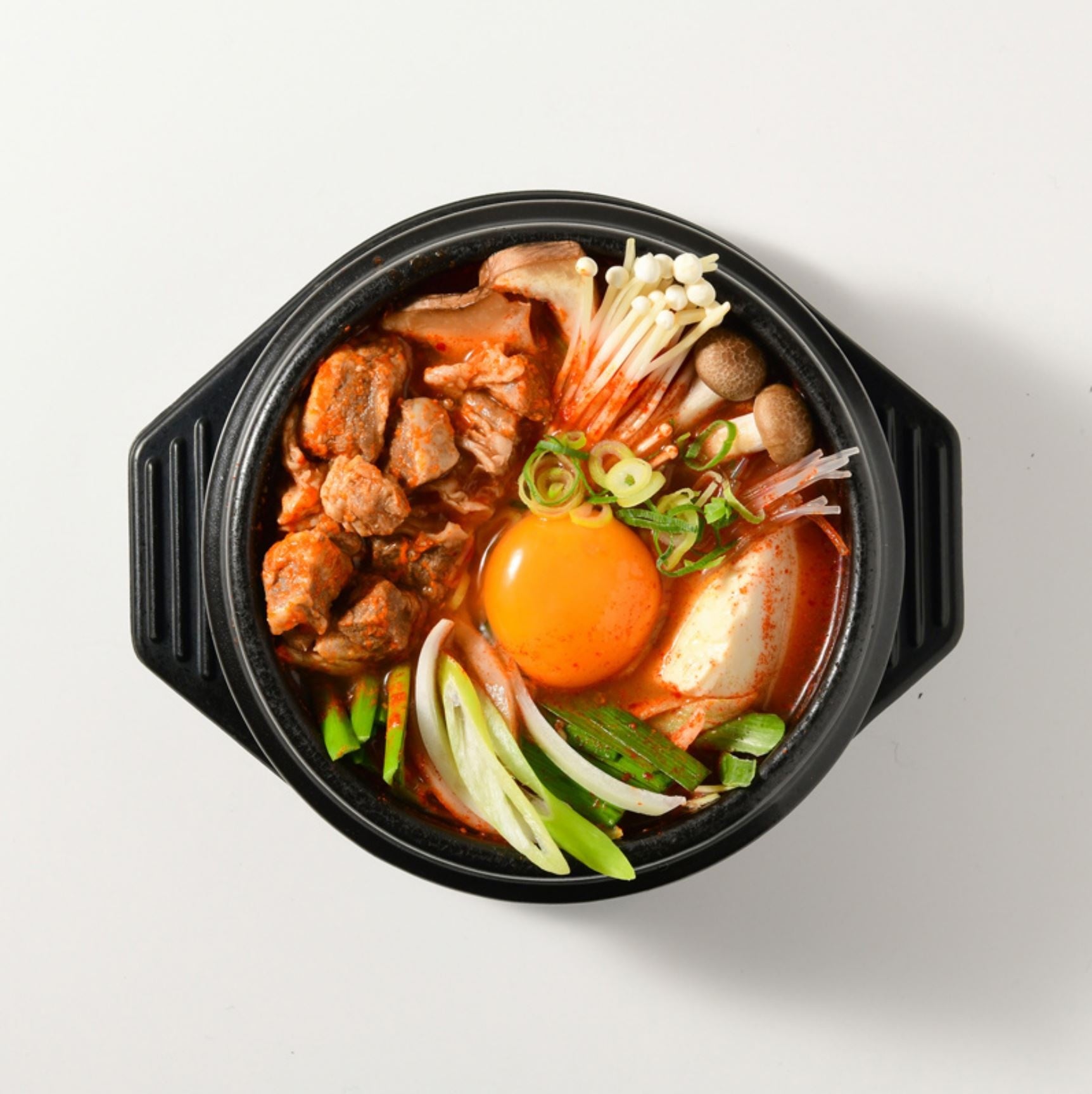 長時間煮込んだボリュームたっぷりの牛すじ肉、こだわりのタデギ、あさり汁とうまみが詰まった純豆腐チゲ。