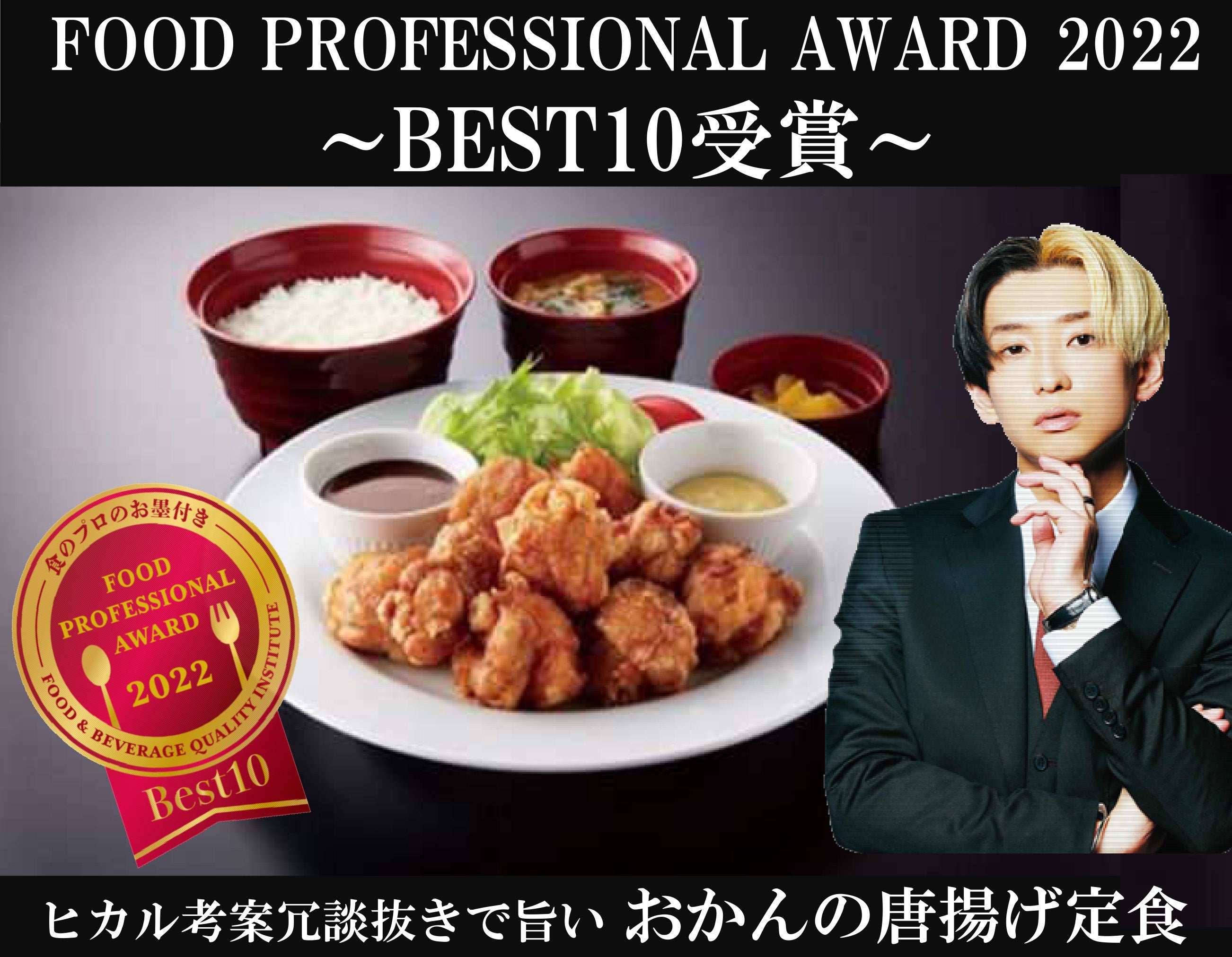 2021年12月より販売している「ヒカル考案 冗談抜きで旨いおかんの唐揚げ」が、一般社団法人フードプロフェッショナル協会が主催する、「Food Professional Award®」にて「(最高ランクの)3つ星」を受賞しておりましたが、この度「Food Professional Award®2022」エントリー総数239商品から選出され、2022年度のベスト10を受賞しました。