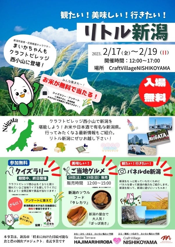 このたび、令和5年2月17日(金)~2月19日(日)に『リトル新潟 in Craft Village NISHIKOYA』を開催する運びとなりましたのでお知らせ致します。