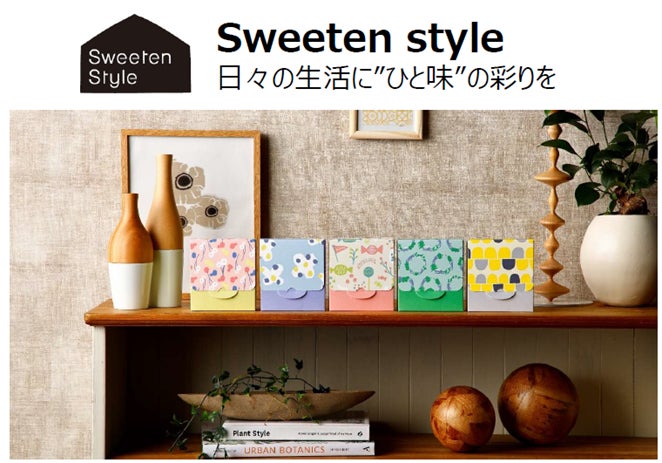 「Sweeten Style」のパッケージは、110周年を記念し、デザイナーのセキユリヲさんにデザインしていただきました。思わず部屋に飾りたくなるようなやさしい色合いのおしゃれなパッケージになっており、ライフスタイルに取り入れていただくことで“日々の生活にひと味の彩り“を与える商品になっています。