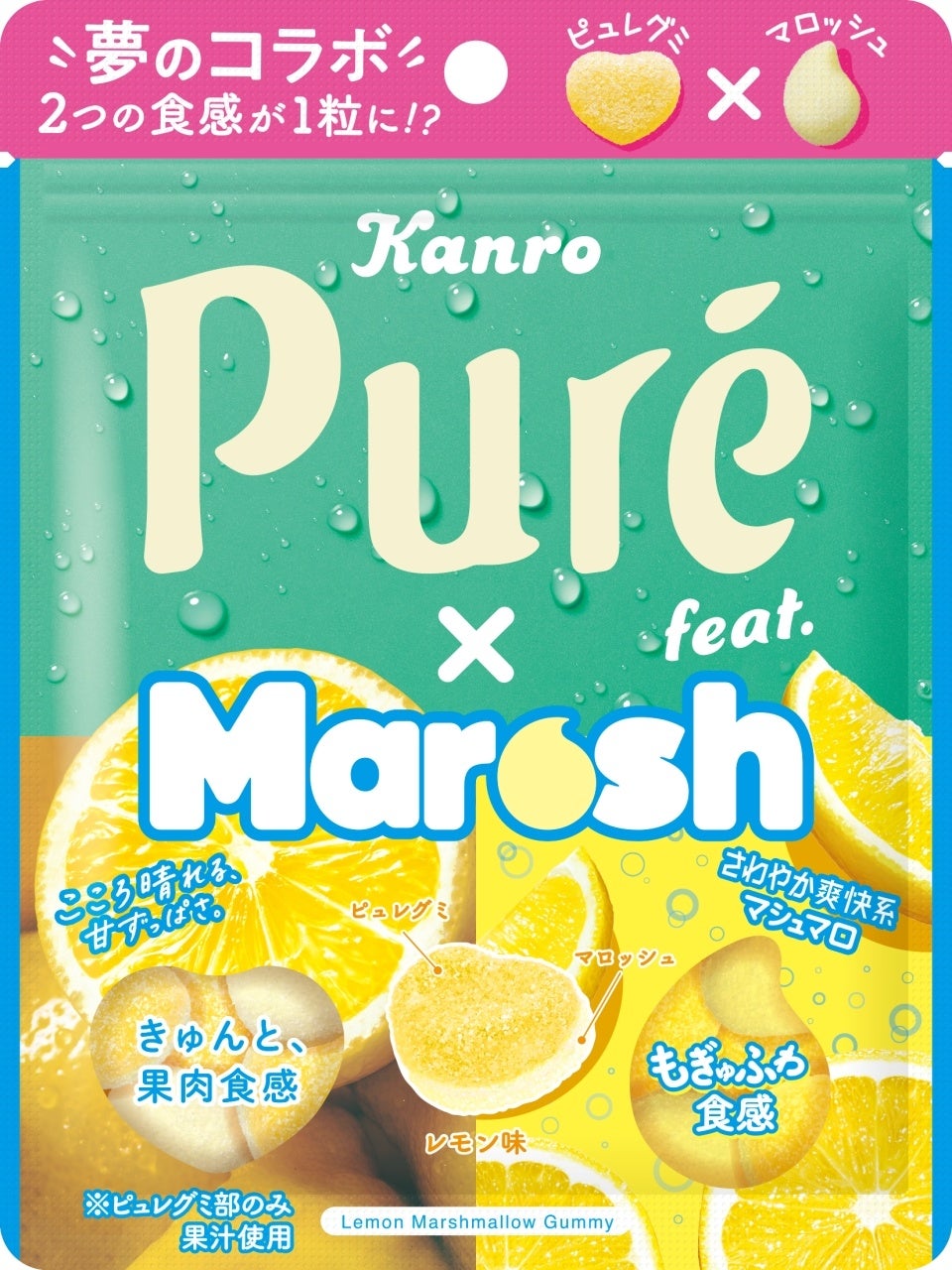 また、Z世代に人気のある既存ブランドの活用として、昨年20周年を迎え成長を続けるヒット商品「ピュレグミ」と、Z世代を中心に「グミなのか、マシュマロなのか」とSNSでも大きな話題を生んでいる大ヒットルーキー「マロッシュ」のコラボレーション商品「ピュレグミ×マロッシュレモン」を開発しました。