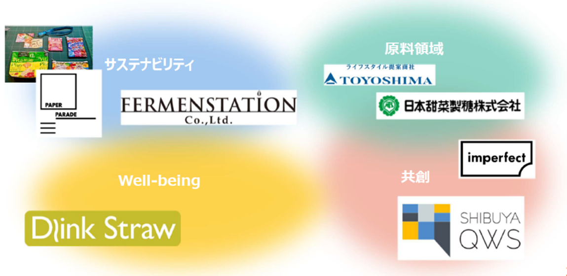 当社ではこれまでフューチャーデザイン事業の取り組みとして、サステナビリティ・Well-being・原料領域・共創の4軸で異業種他社との協業を行ってきました。