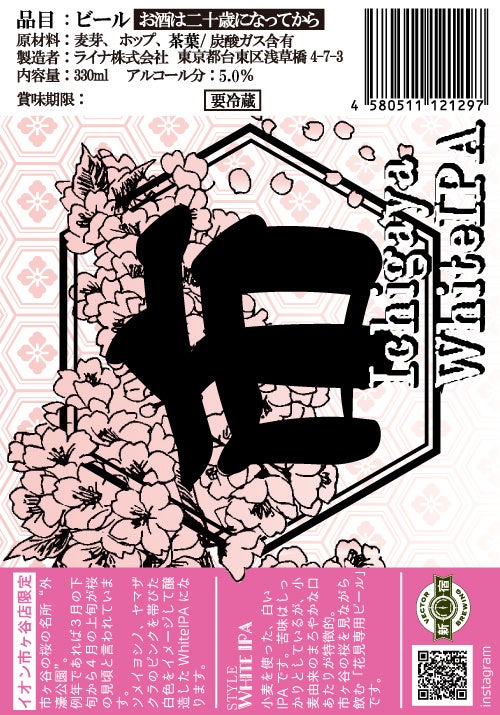 原材料の一部に小麦を使用した、春の訪れを祝うかのような爽やかな香りと淡い色合いが特徴のホワイトIPA。小麦を使用したビールならではのなめらかな口当たりとホップ由来の苦味が癖になるビールです。市ヶ谷店で先行販売します。※イオンリカー専門店各店では、順次発売予定。
