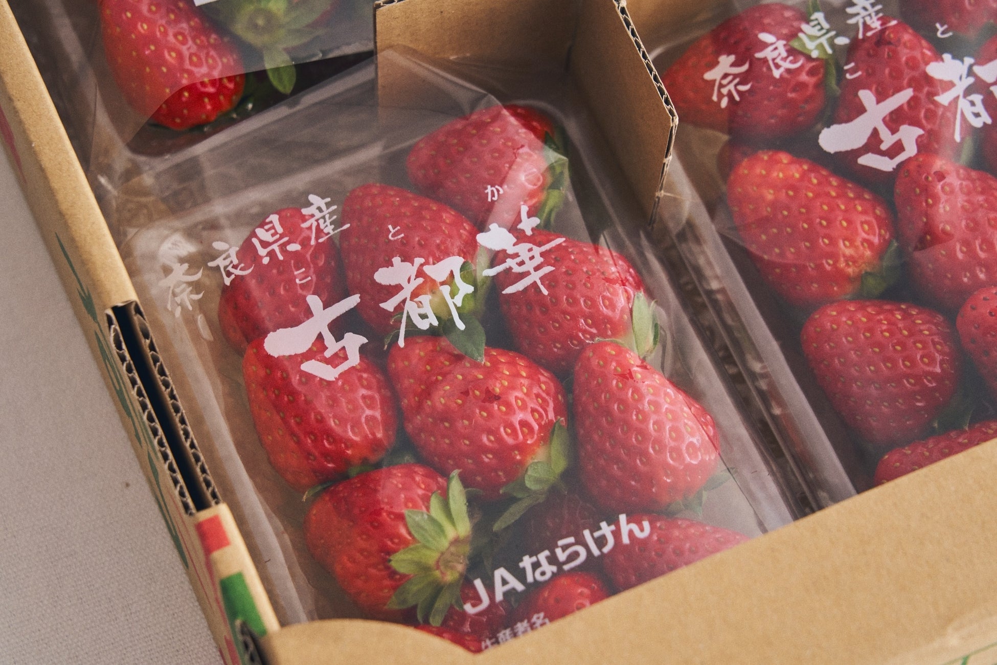 「“古都・奈良に咲く華”のような存在に」との願いを込めて、2011年に品種登録された奈良県のブランドいちご。栽培農家が少ない高級品種のいちごとして知られるプレミアムいちごです。甘さと芳醇な香り、そしてしっかりとした歯ごたえが特徴。平均的なイチゴの糖度が11~12度であるのに対して、糖度が15度以上あるにもかかわらず、程よい酸味もあり、口に入れた瞬間ふわっと華やかな香りと甘さが広がります。艶やかに輝く真っ赤な大粒で、その名の通り端正で華やか。同県内では老舗ホテルやレストランのスイーツなどにもよく使われる人気の品種となっています。