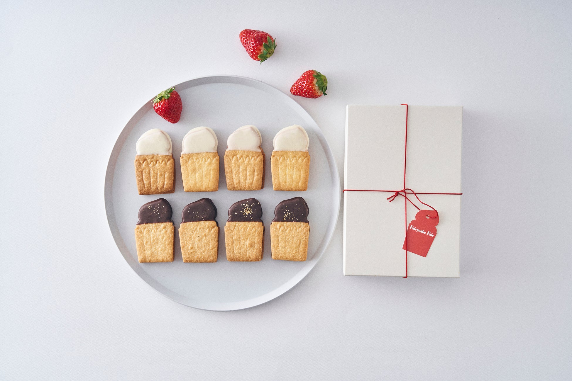 甘く濃厚な果汁がたっぷりの古都華をふんだんに使用したいちご生バタークリームは、ホワイトチョコレートでハーフコーティングしたビスケットへ一つ一つ絞り、丁寧にサンドしていきます。ビスケットの香ばしさとともに、口いっぱいに広がるいちごの華やかな香りと甘酸っぱい味わいは、まるでフレッシュいちごを食べているような気分に。いちごの味わいがしっかりと感じられる充分な食べ応えは、古都華だからこそ表現できる本格いちごお菓子となっています。