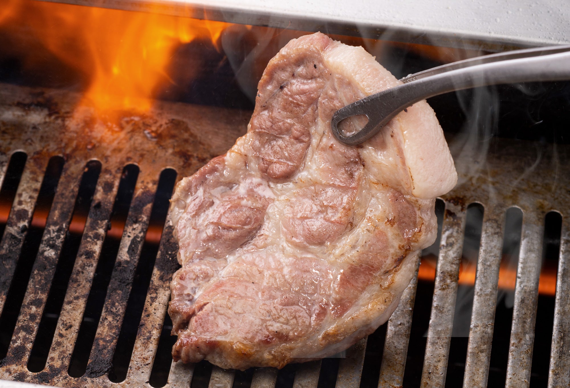 「ホルモン・焼肉 金豚KINTO」は、「豚肉」を専門に取り扱う焼肉店です。同店は生産者・物流業者の方々にご協力いただき、独自のルートを構築し、新鮮な豚肉の仕入れを行っております。新鮮な豚肉は、柔らかくジューシーで、臭みもなく、旨みが強いのが特徴。特に内臓部分のホルモンは鮮度が落ちるのが早いため、新鮮さを重視しています。また、カルビ、ロース、ステーキには銘柄豚である「和豚(わとん)もちぶた」を使用。三品種の豚を掛け合わせ種豚づくりからこだわって生み出された「和豚もちぶた」は、ひとくちで分かる豊かな旨味と肉の柔らかさが特徴。ロースや肩の部位はじっくり焼いても固くならず、冷えても柔らかなままです。