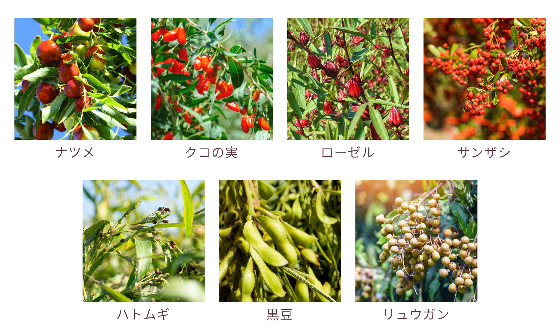 ナツメ…アジア各国で古くから健康・美容食材として食べられてきたフルーツ。鉄分や葉酸、ビタミンB群などを豊富に含み、カラダを内側から温めて肌や髪のハリを維持する効果が期待されています。香り高く、ほんのりとした甘み。