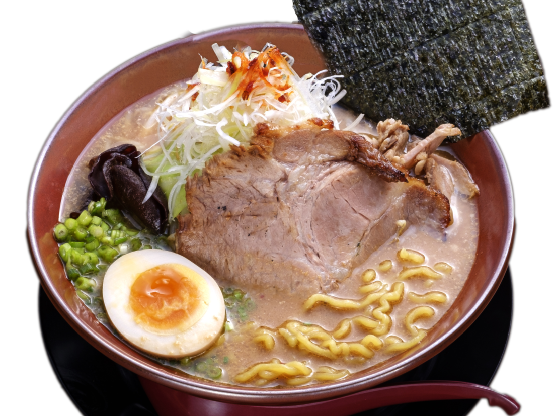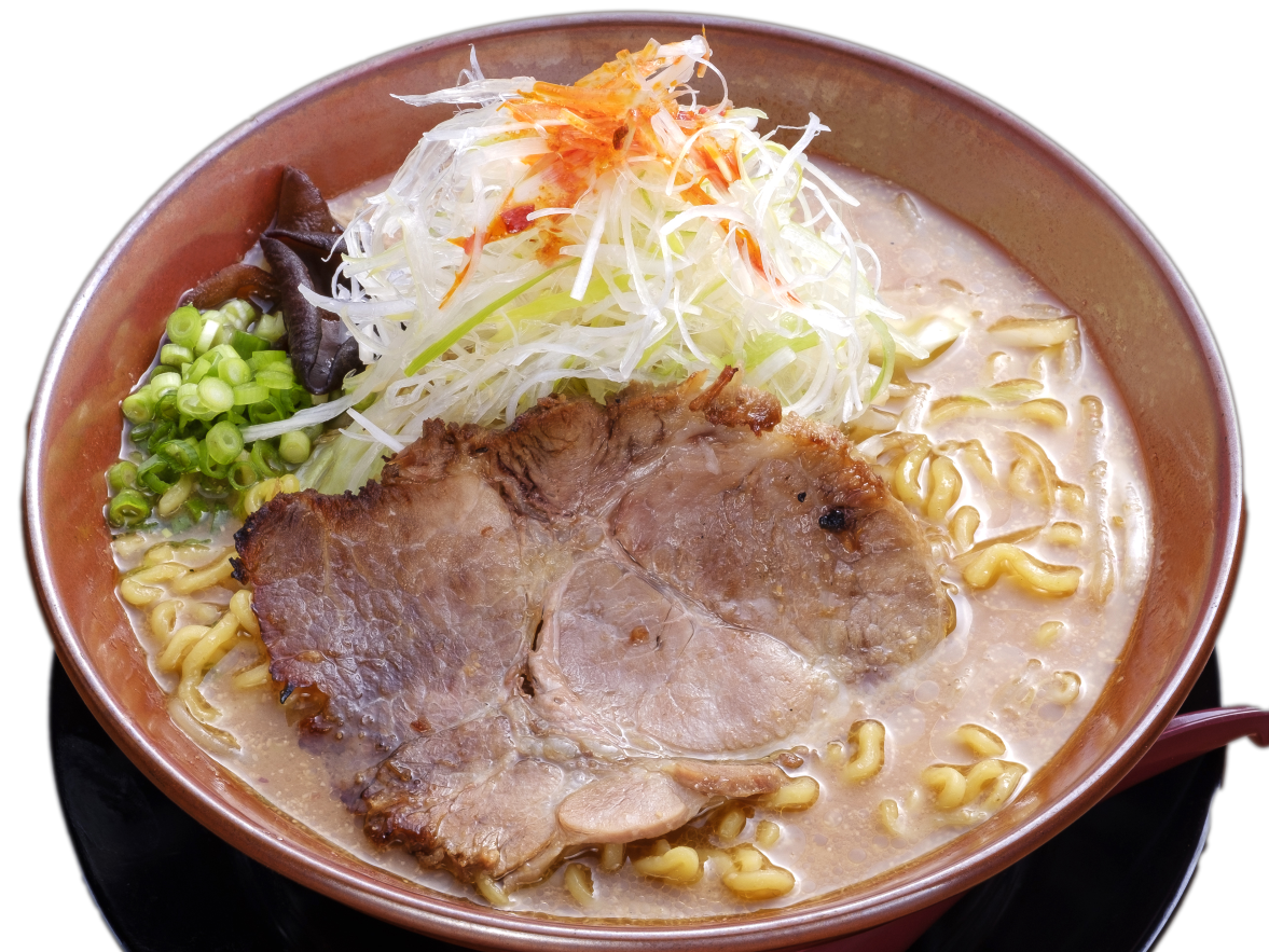 白髪ねぎ・味玉・チャーシュー・のりをトッピングした情熱の一杯。