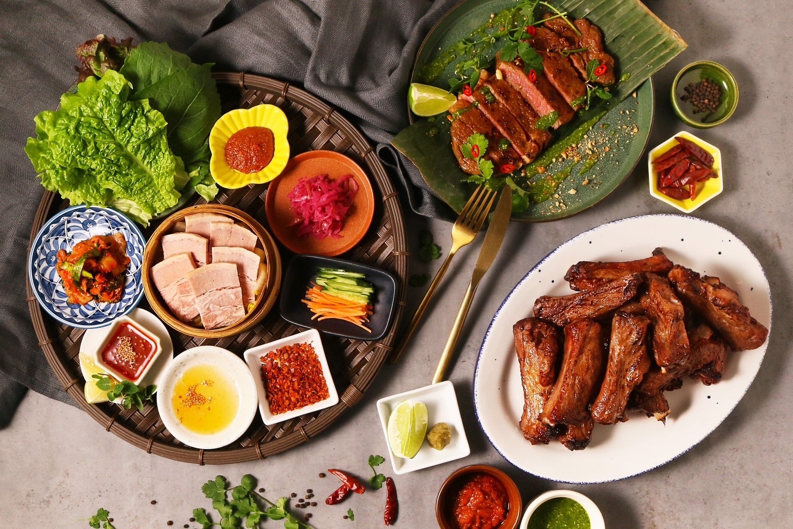 メインには、3種のソースで楽しむリブグリル、たっぷりの彩り野菜と一緒に食べたいポッサム、スパイシーで食べ応え抜群のヌアヤーンと、アジアン気分を満喫できるラインナップ。