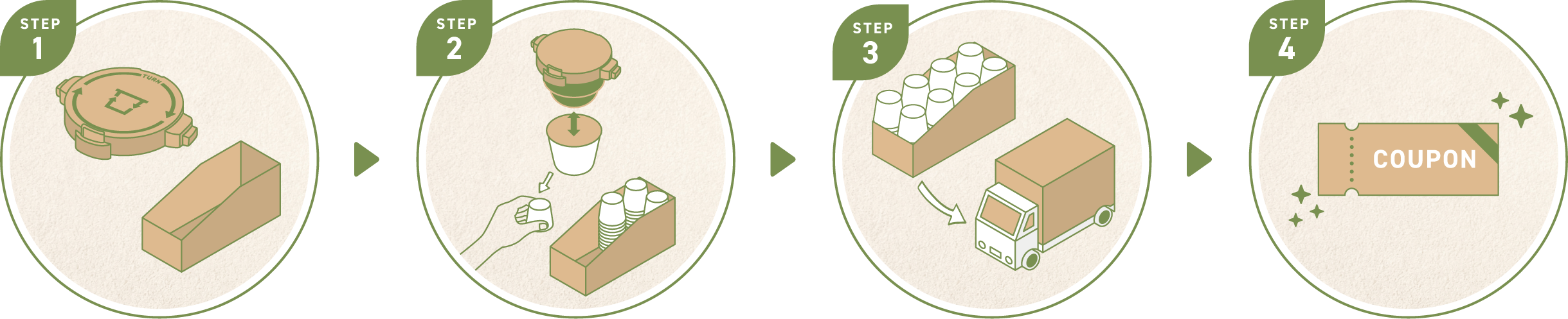 ④ リサイクルボックスを弊社で受領後、送料相当のクーポン送付・定額便のお値下げをいたします。