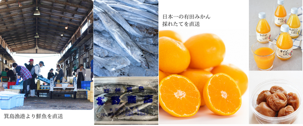 その他、日本一を誇る有田みかんや柑橘ジュース、地元産の魚の干物、梅干しなど和歌山の恵みを全国にお届けいたします。