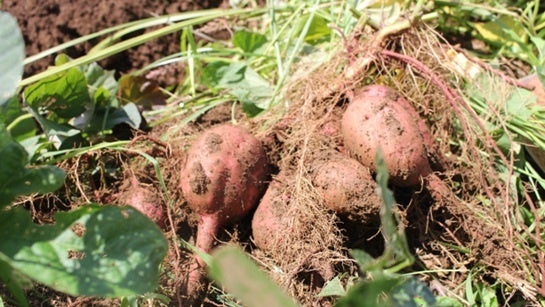 「日本さつまいもサミット」今年の受賞者の生芋が並びます!
