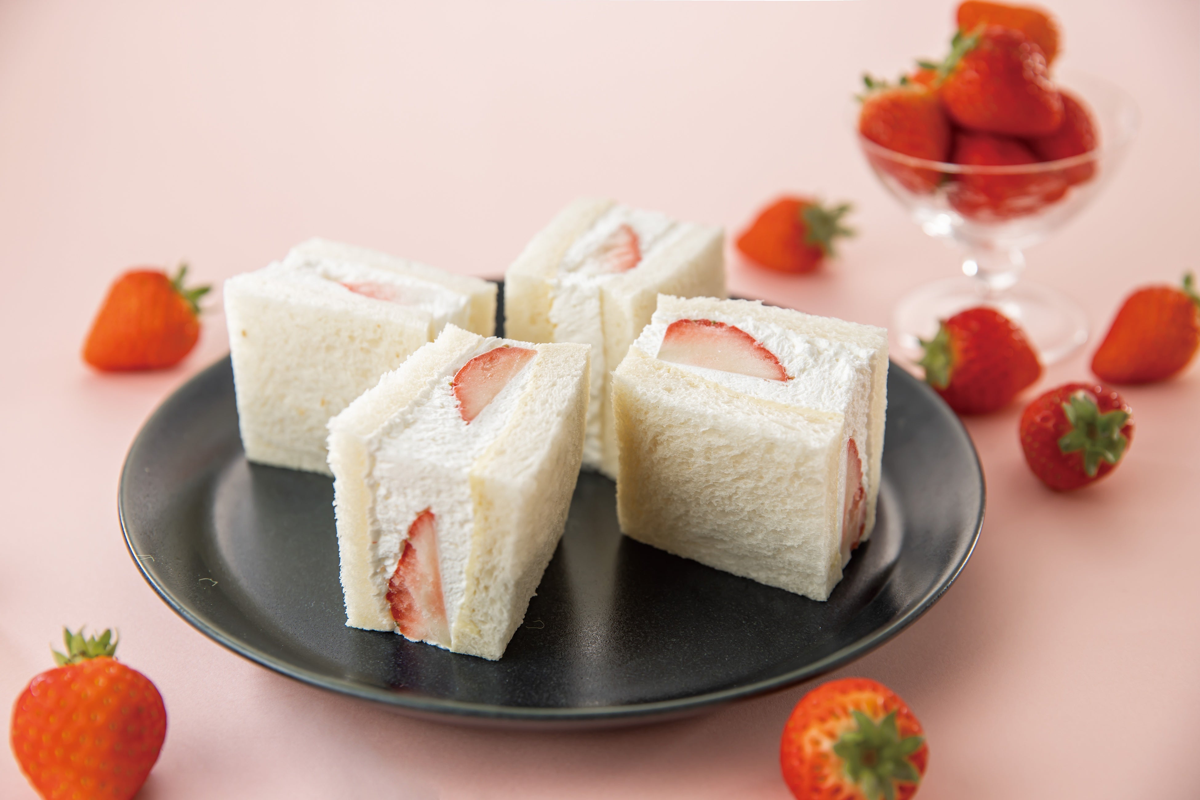 カスタードクリームとホイップクリームでいちごを挟んだ人気の定番フルーツサンドです。