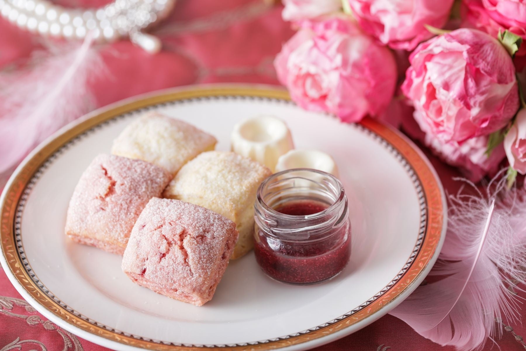 【スタンド下段】スコーン(プレーン&ベリー)/クロテッドクリーム/コンフィチュール(いちご)