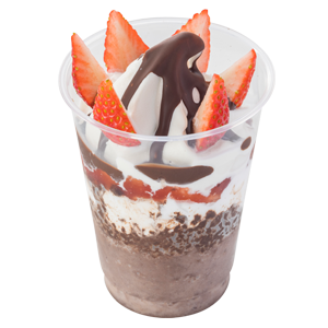 冬はとちおとめとチョコのかき氷、自慢のソフトクリームを使用した