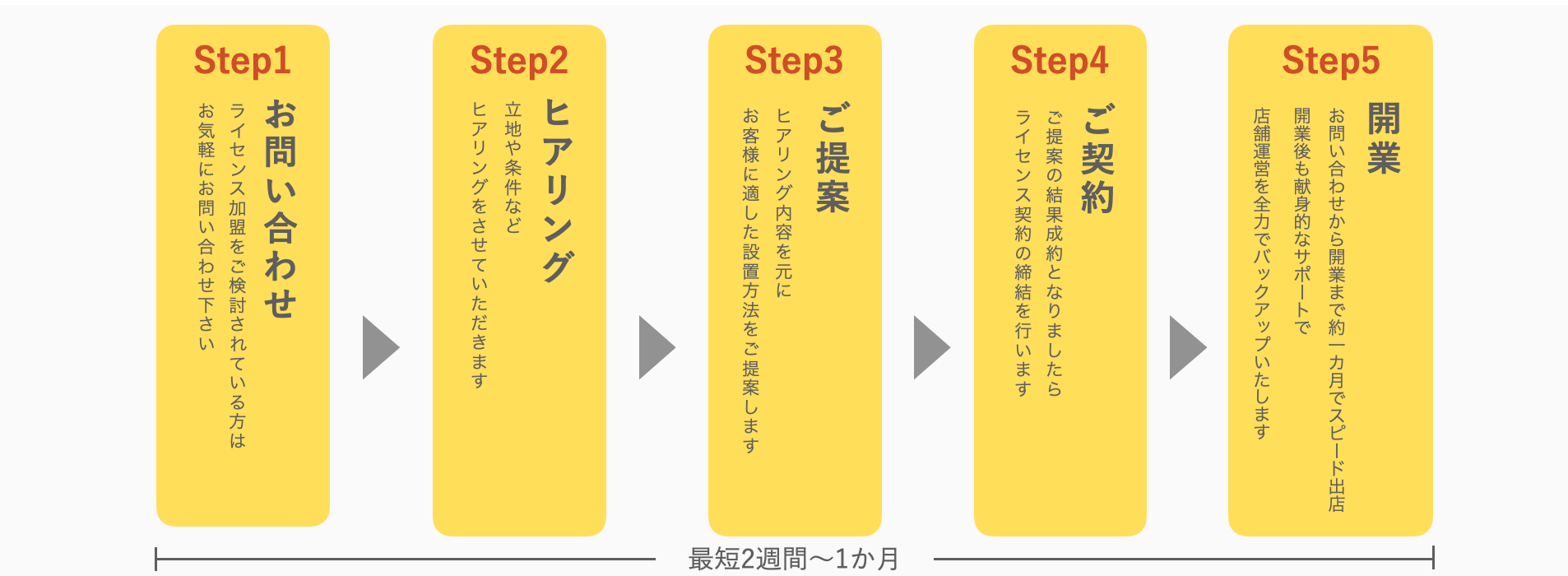 1ヶ月でスピード出店!開業前・開業後のサポートもお任せください。