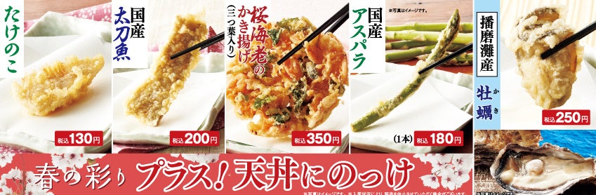 いつものご注文に春の味覚をプラス!単品でも、お好きな天丼に”のっけ”ても美味しい、バラエティー豊かなラインアップ