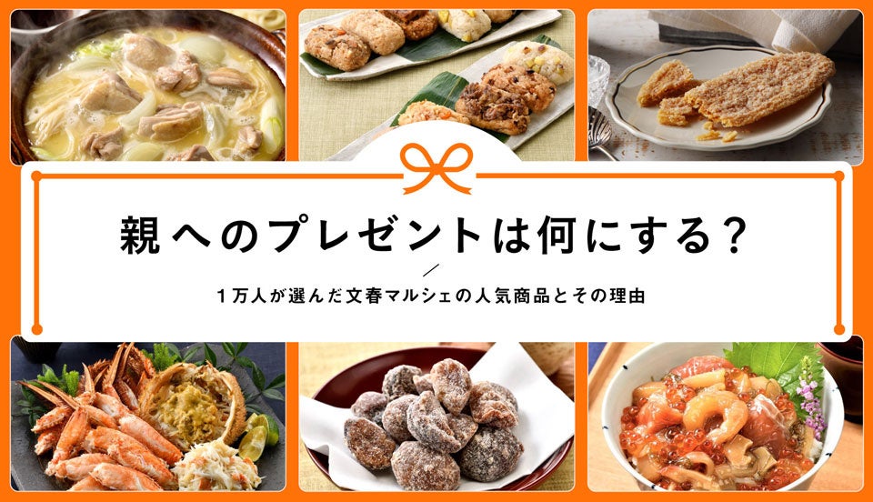 株式会社⽂藝春秋(東京都千代⽥区、社⻑:中部嘉⼈)が運営する⾷の通販サイト「⽂春マルシェ」は、親にプレゼントする頻度や予算、記憶に残るプレゼントの選び方などについて、1万人にアンケート調査を行いました。その際、あらかじめ文春マルシェがピックアップした人気商品8点についても、親に贈るとしたらどの商品が良いか、理由とともに回答していただきました。人気が高かった順にご紹介します。