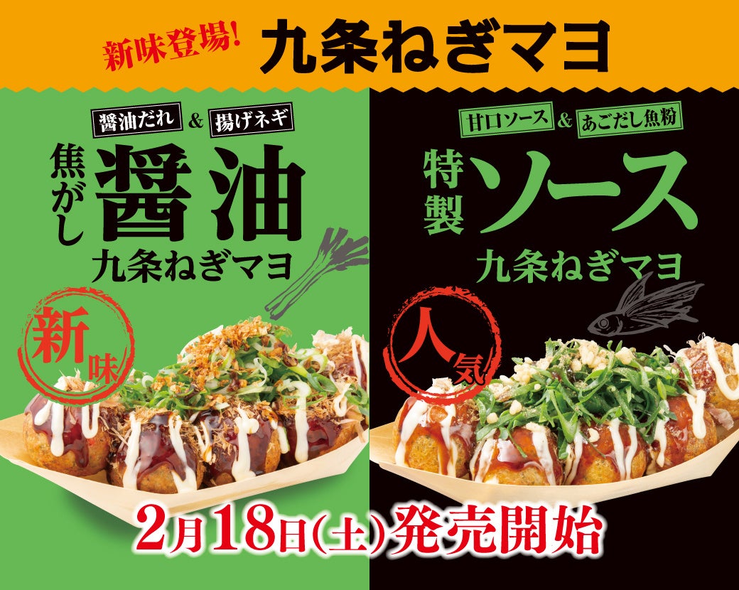 今回は、大人気の『九条ねぎマヨ』“醤油とソース”、2種類の味をぜひお楽しみください!