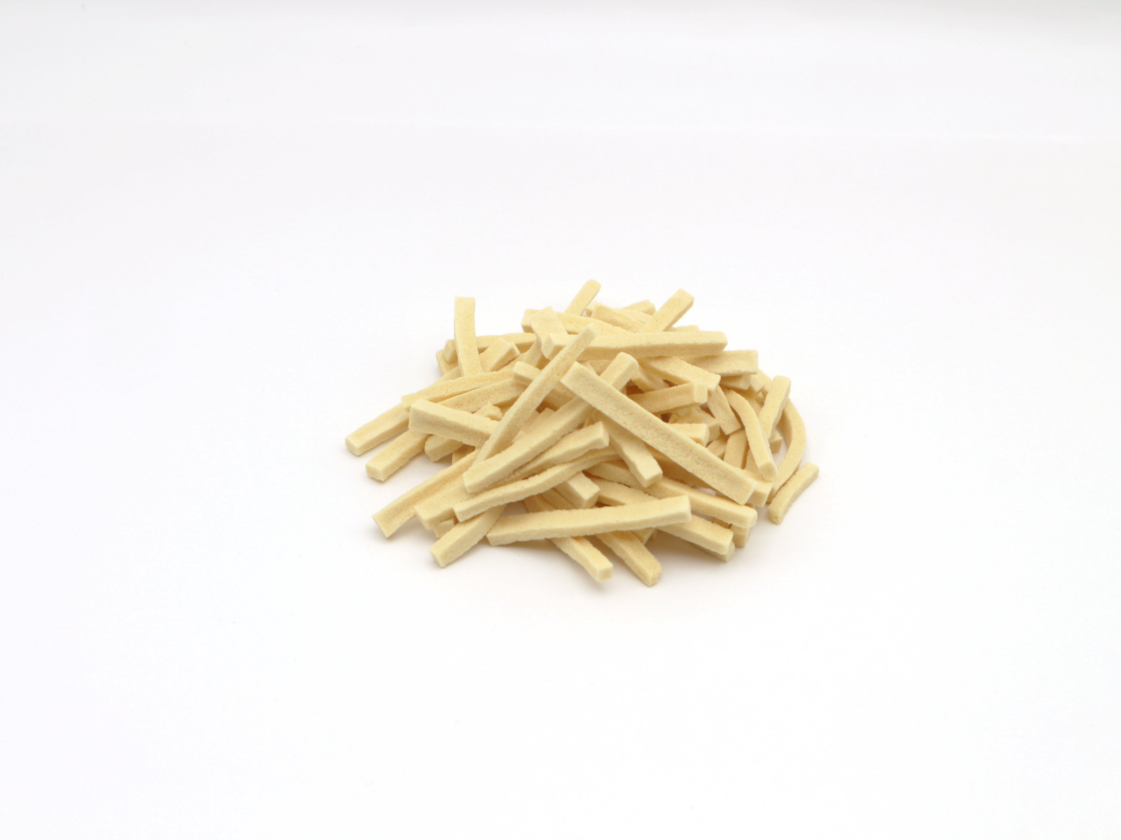 ⾖腐の栄養を凝縮することで⾖腐の約9倍※のたんぱく質を含む「⾼野⾖腐」(凍り⾖腐、凍み⾖腐ともいう)は、1200年前から貴重なたんぱく質源として含め煮やみそ汁など様々な料理で⾷されてきました。加熱調理が⼿間でしたが、新製法により、熱湯を注ぐだけでいつもの含め煮が⼿軽に⾷べられるようになりました。