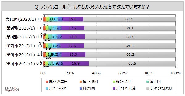 マイボイスコム株式会社(東京都千代田区、代表取締役社長:高井和久)は、10回目となる『ノンアルコールビール』に関するインターネット調査を2023年1月1日~5日に実施しました。調査結果をお知らせします。