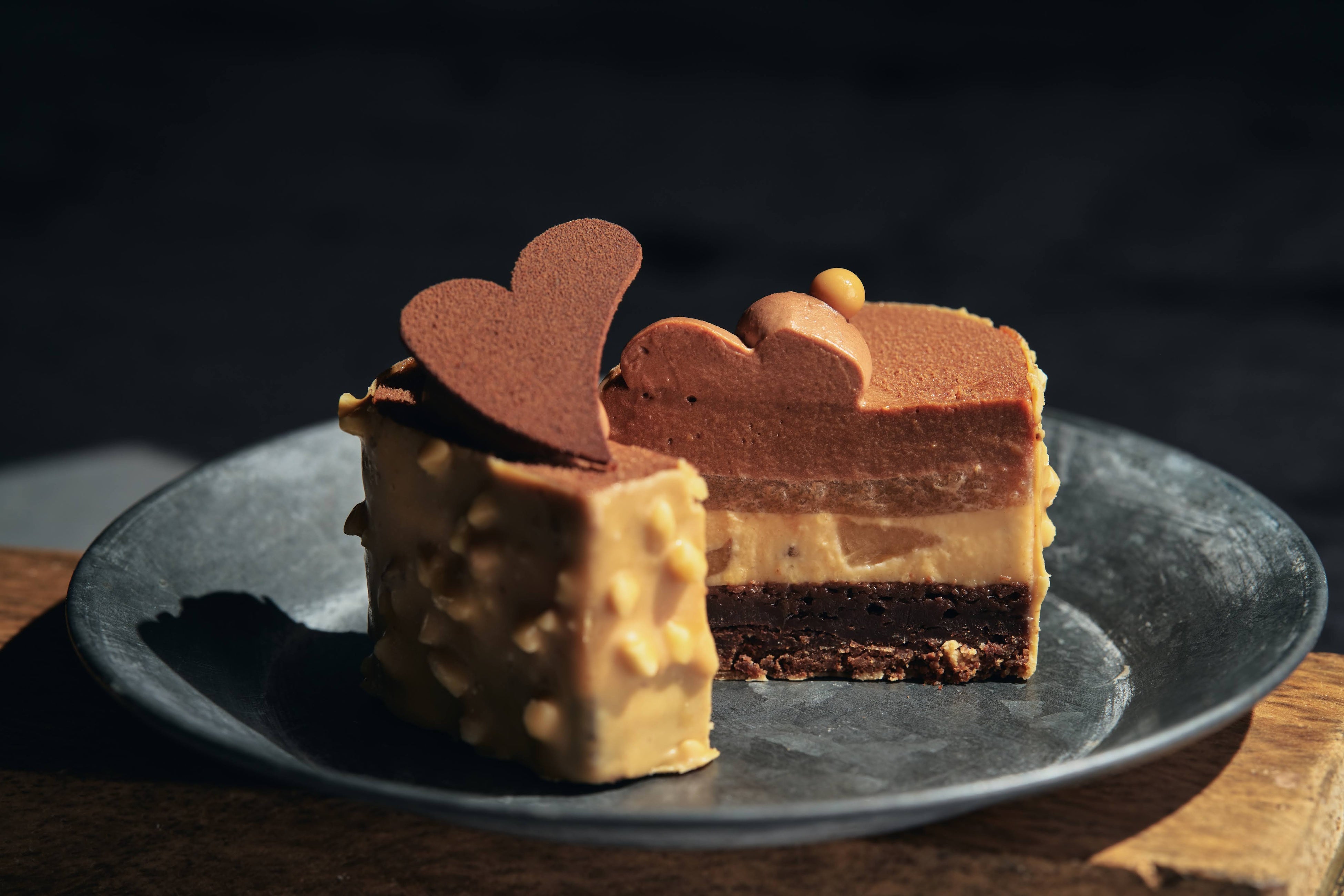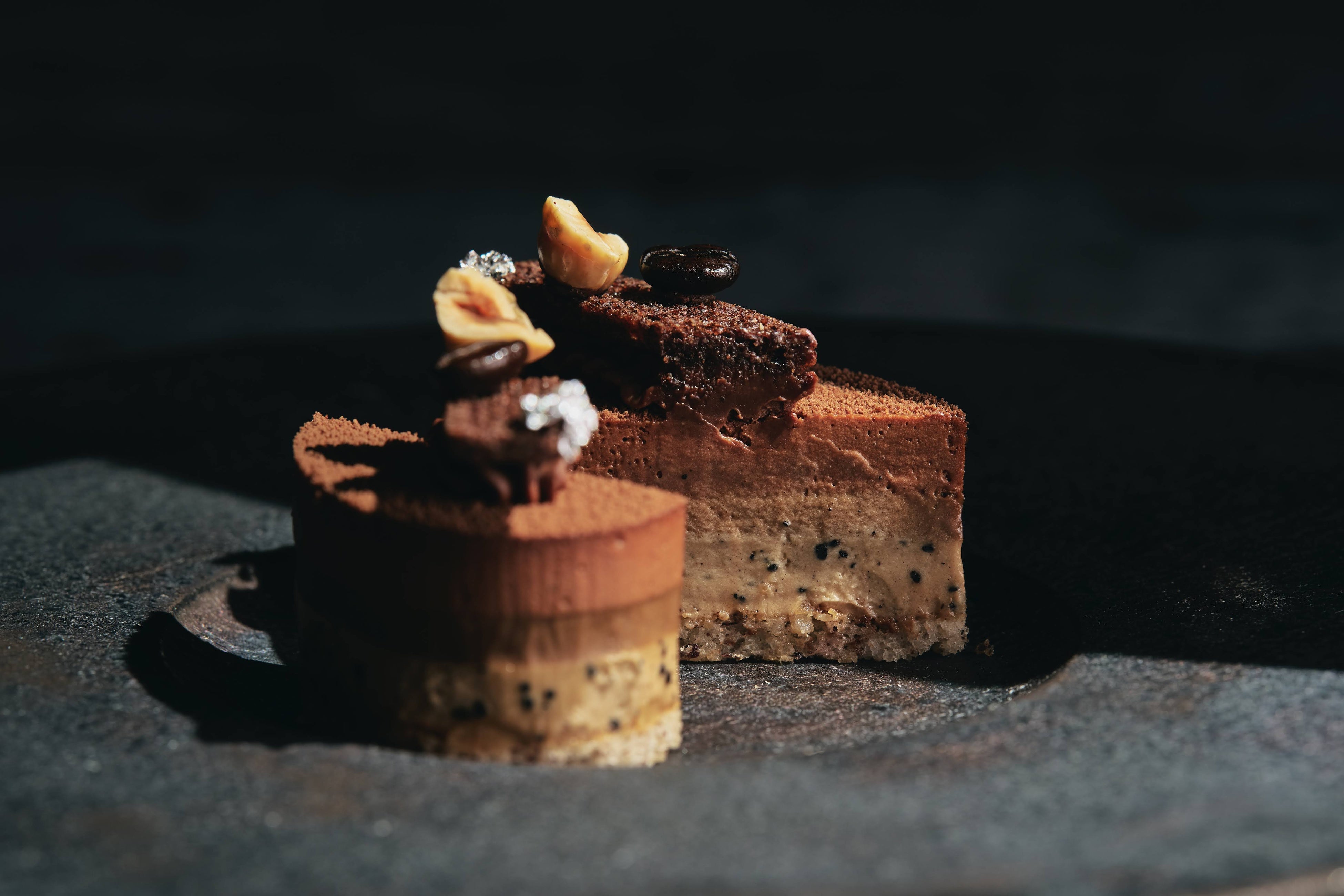 ショコラと相性のよいヘーゼルナッツやコーヒーを合わせたケーキ。