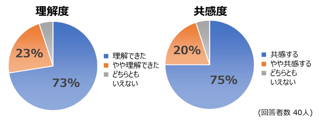サステナブルな取り組みの理解向上のため、今年新たに行った出展メーカー向け説明会の事後アンケートでは、「メーカー全員で意識していく貴重な機会でした。」「御社のような影響力のある企業が牽引していただけるのはとてもありがたいと感じています。」などのコメントもあり、全体の約95%の回答者にサステナブルな取り組みを「理解できた」「共感する」と回答いただいております。