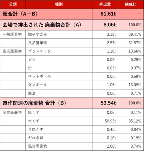 『UCC Smile Festa 2022』の廃棄物処理実績(「環境報告書」より抜粋)