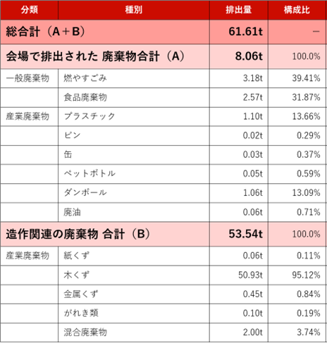 『UCC Smile Festa 2022』の廃棄物処理実績(「環境報告書」より抜粋)